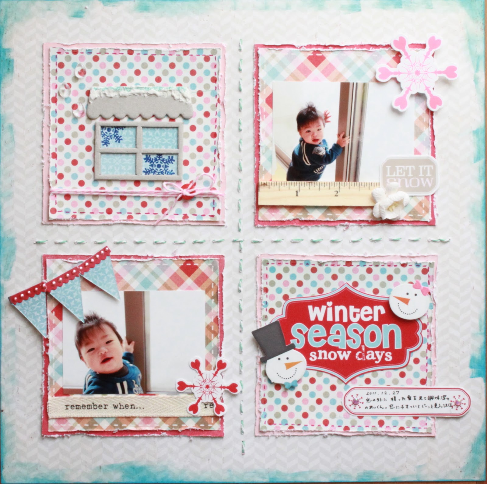 Beautiful wintery page!!!! I love the disstressed papers and the layering!!! And such a cute little face!!! Thank you so much for participating our chellenge!!!! Good luck!!!